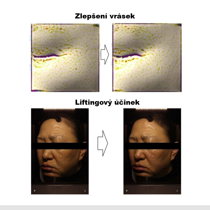 V porovnání s obdobím před použitím přípravku se úhel udávající stupeň povadlosti kůže po 2 týdnech používání statisticky významně snížil o 1,30 %, což svědčí o liftingovém účinku (p<0,05)