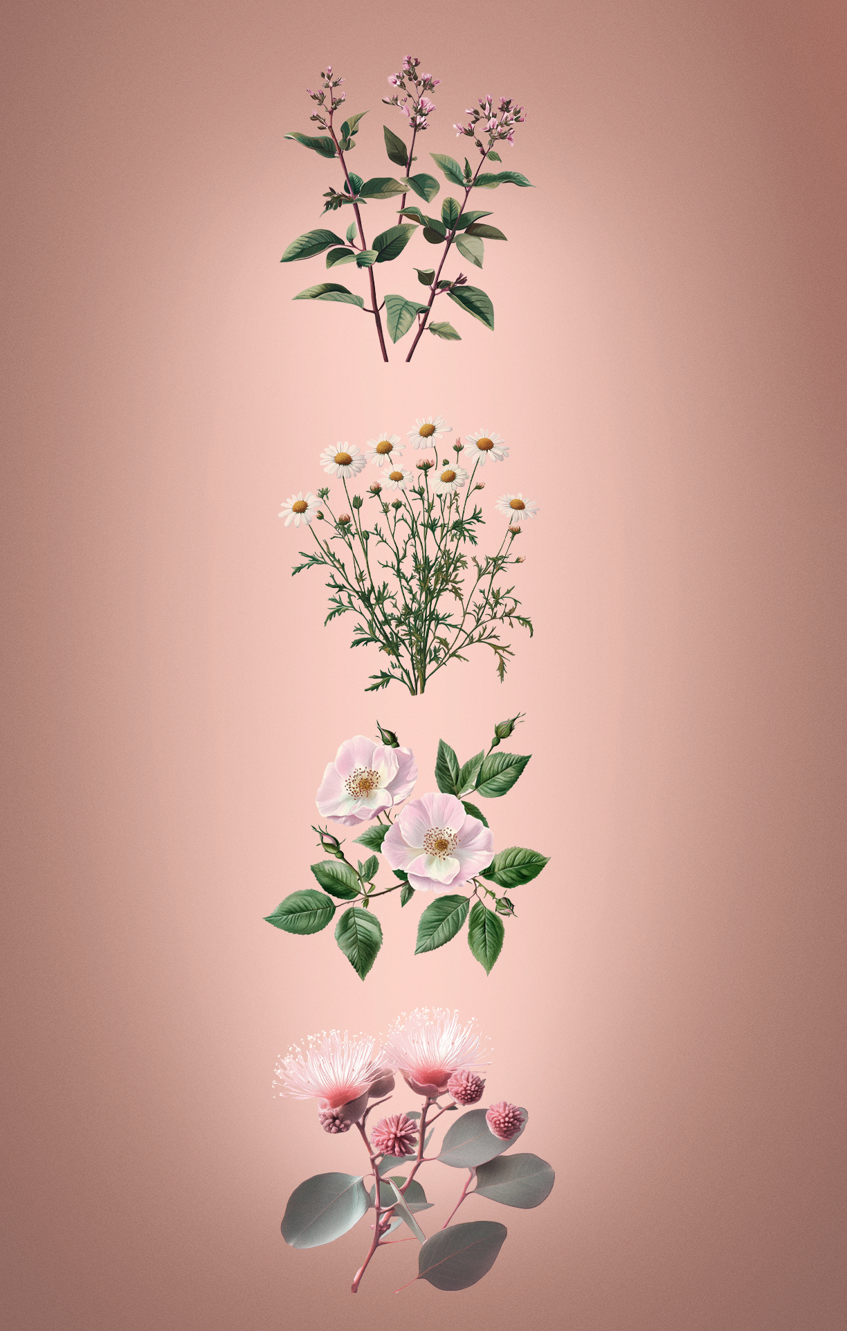 Ingredience jako růže, lékořice nebo heřmánek zklidňují, hydratují a podporují regeneraci pleti.